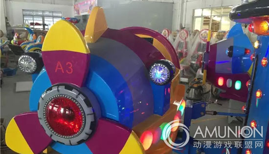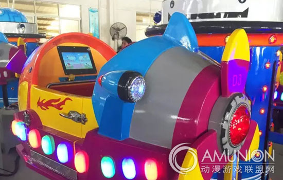 以梦幻太空船为主题的升降旋转飞船,拥有超炫酷灯光效果;座舱内特设有12寸荧屏,为首次将视频电子屏和机头风车与升降飞船相结合,使游玩过程更加有趣;运行期间飞机机头风车会进行旋转,真实感倍加! 产品视频: 游戏玩法 1、游戏开始,玩家选择不同颜色的飞船进入; 2、关上闸门,系好安全带,扶好安全杆,准备飞行之旅; 3、边搭乘飞船,边观看儿童卡通片或歌舞视频(控制操纵杆可切换观看节目); 4、游戏结束,待飞机停止后,拉开闸门有序离开。 产品参数 占地面积:Φ5m * H2.5m (含围栏) 运行电源:220V 1.8KW 产品细节: