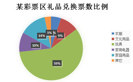 从数量上看,文化用品占据最大比例,高达82%,然而实际兑换的彩票数却只有9%;相反,玩具的兑换个数只占11%,却占据彩票数量的59%。