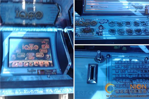 《IQ乐园网络版》机台呈竖长形,体形较小,不太占场地。机台设计风格轻松,以黑色、银色、蓝色为主色调,呈现出一种冷艳的美感,迎合了玩家想要释放压力、游戏玩乐的心理需求。在通电运行后,机台散发出通透的蓝色光芒,纯净的蓝色一向给人冷静之感,如此设计是为了让玩家能够静下心来投入到游戏当中,可见设计者的良苦用心。而投币口则设置在机台平放的面板上,无需玩家蹲下来或弯下腰投币,相当的人性化。