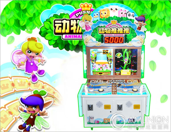 动物推推推彩票机是采用单屏幕双座位的独创设计概念,在众多推币游戏中外型额外吸睛。明亮清爽的整体设计与游戏内容呼应,使用白、蓝、绿三种基色,再用木头色做为点缀,营造出与游戏画面相同。
